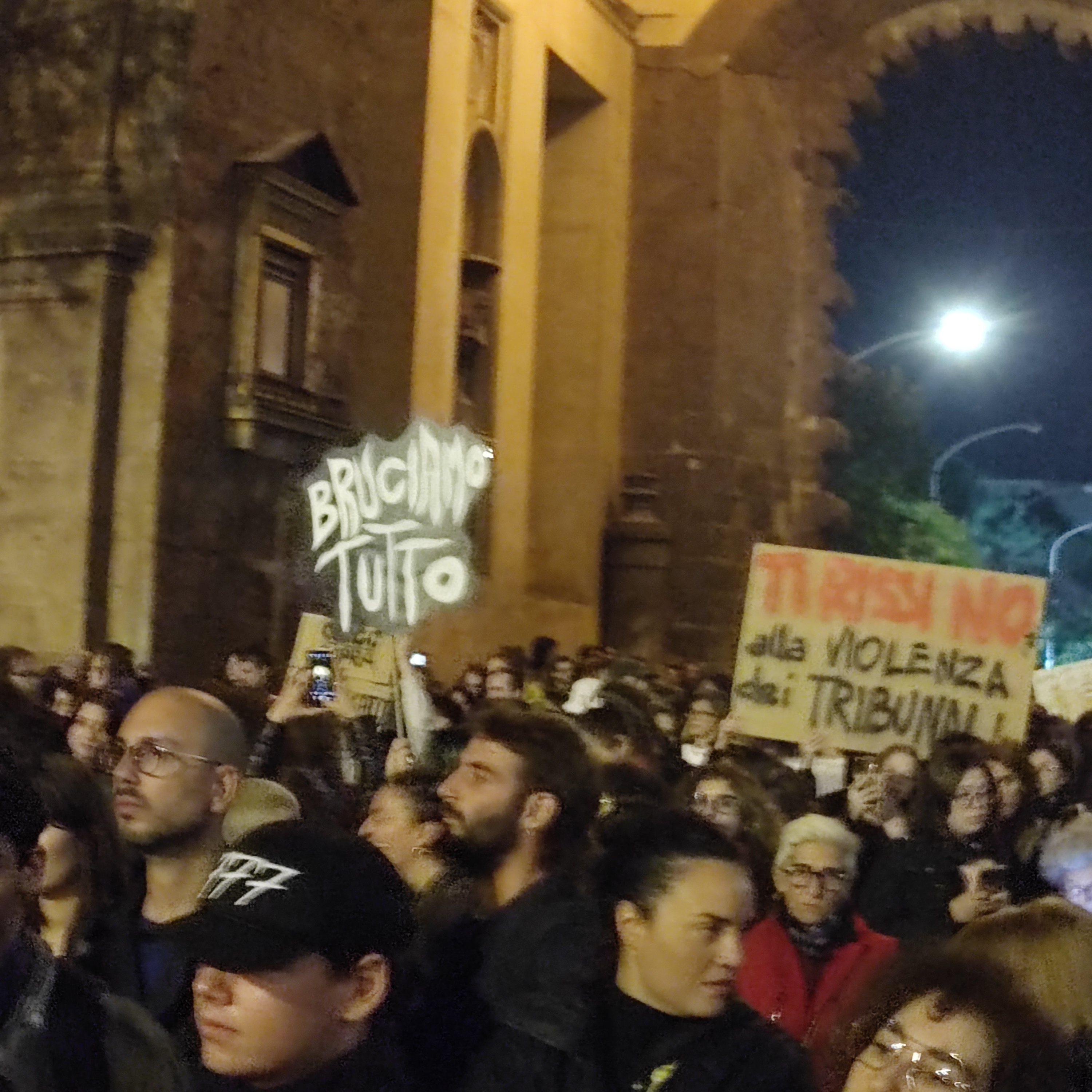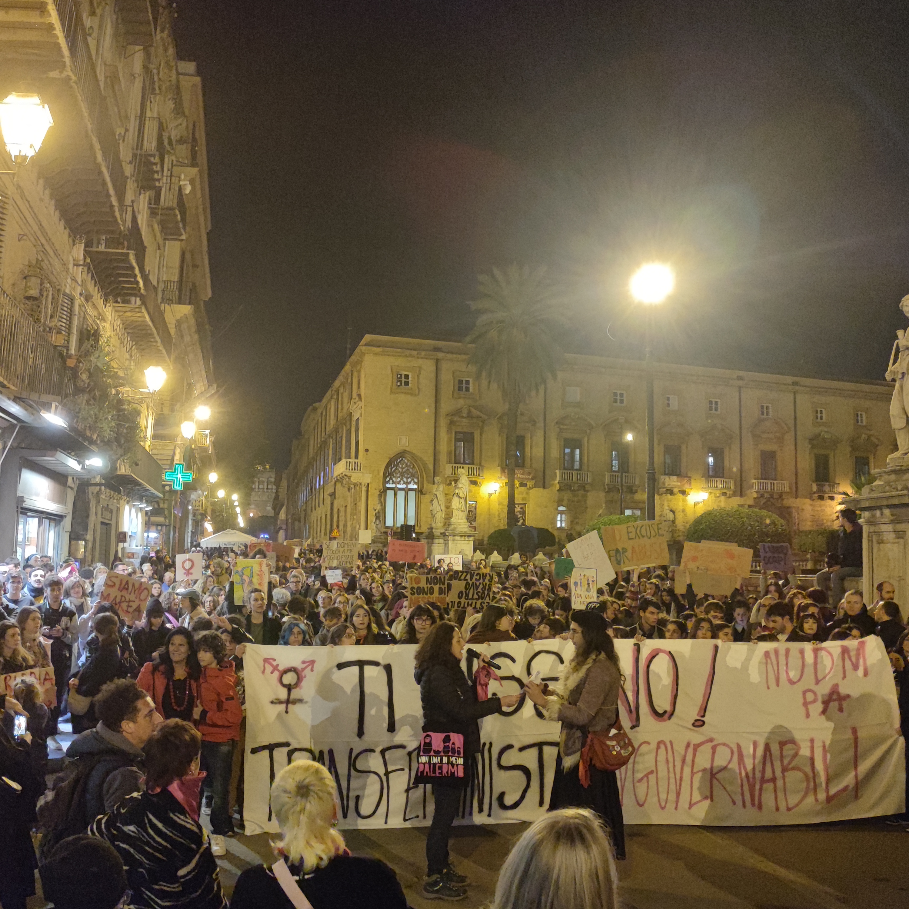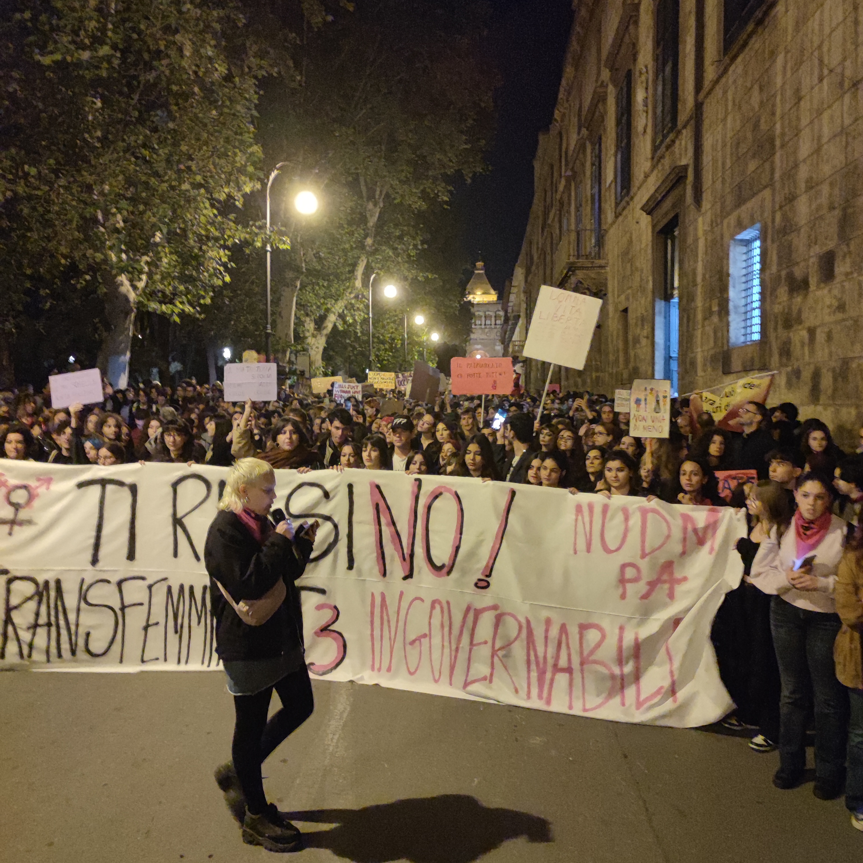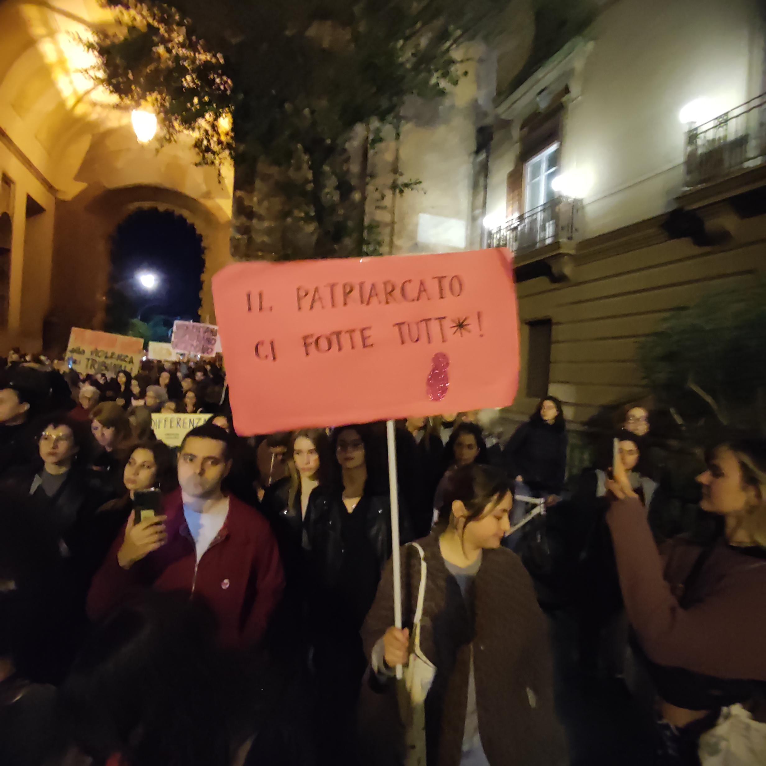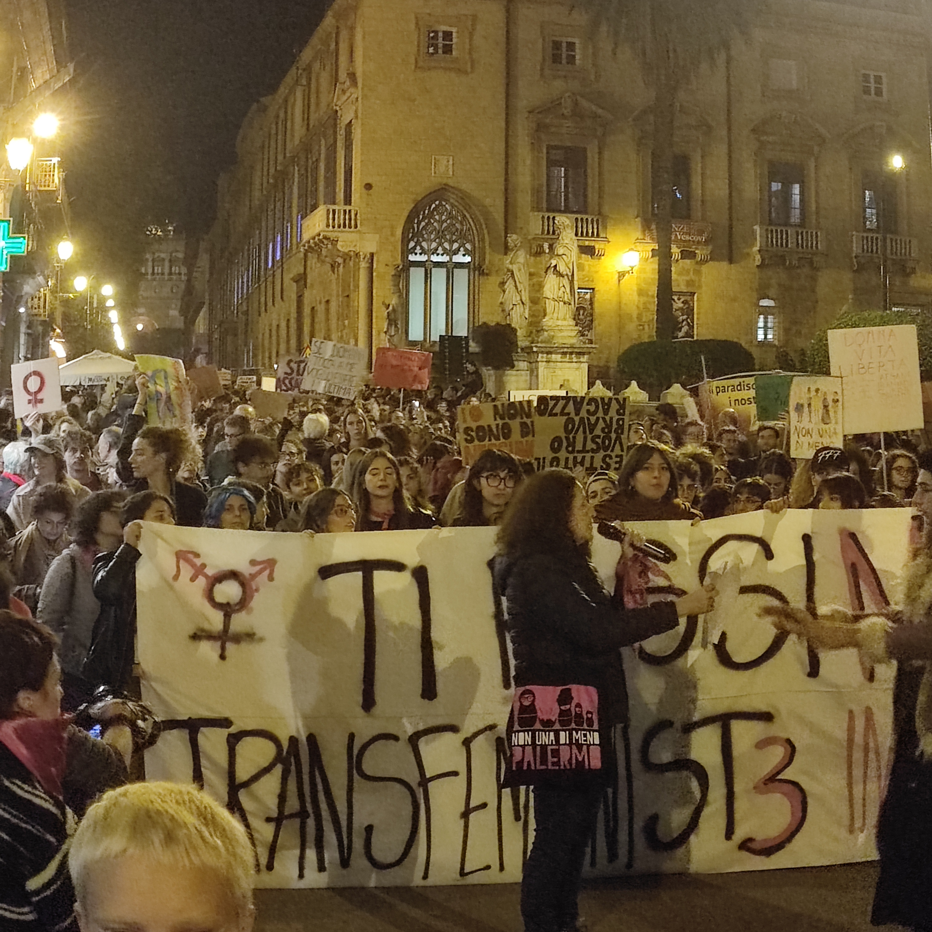 “Come donne, persone non binarie e LGBTQIA+, persone razzializzate, migranti, con disabilità, persone che soffrono particolarmente la povertà economica, transfemministe sappiamo che patriarcato e capitalismo ci stritolano sempre e ovunque nella loro morsa, e al sud quei meccanismi di sovradeterminazione, sottomissione e marginalizzazione aggrediscono con più ferocia!” A dare il via alla manifestazione una performance dell’associazione “Spazio Donna Zen” che ha portato in piazza una pièce teatrale tratta da Stai zitta di Murgia ove ha trovato spazio un canto di Rosa Balistreri. Sullo striscione un messaggio chiaro e sibillino: Ti rissi no! Transfemminist3 ingovernabili