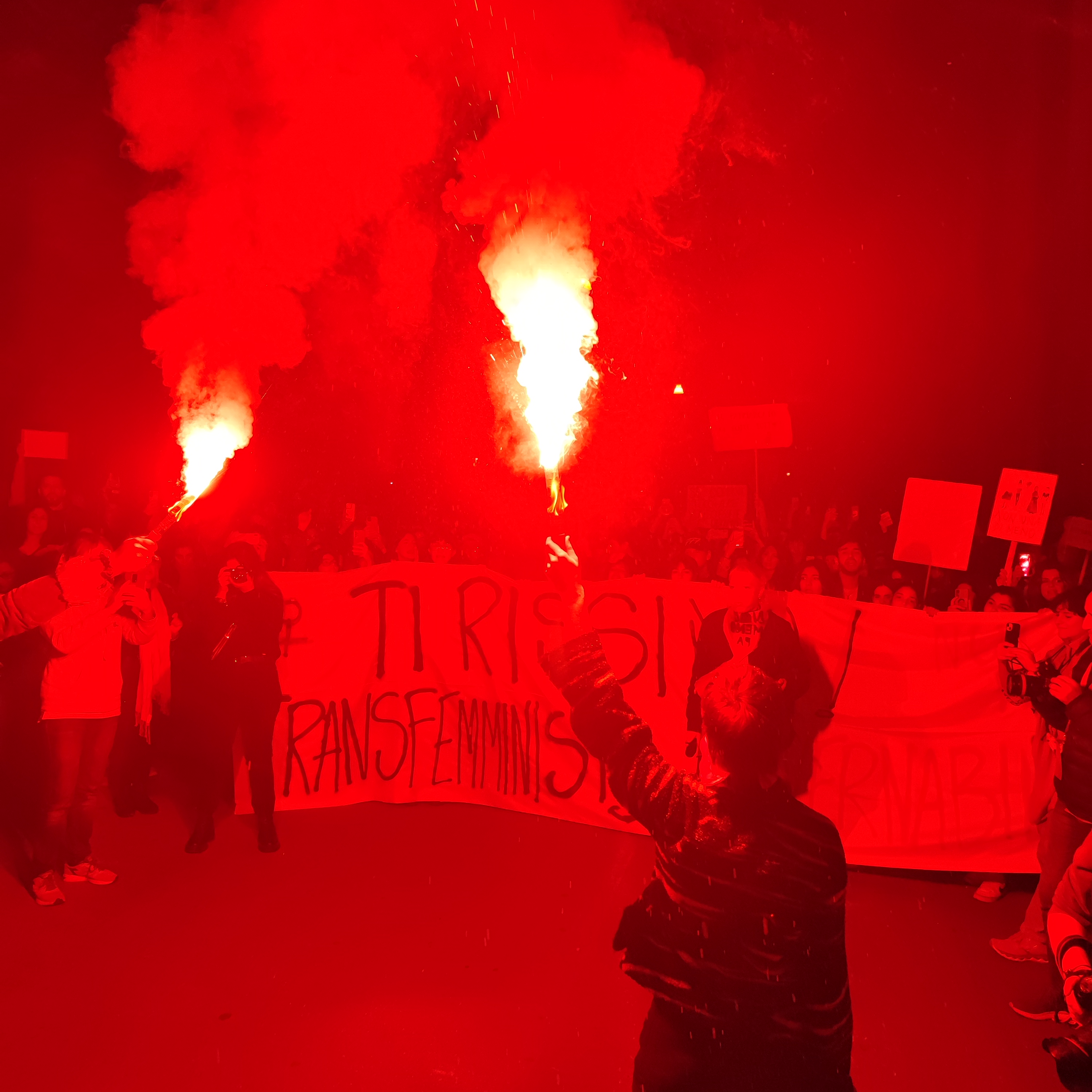 “Dall’inizio del 2023 sono 106 in Italia i femminicidi, i lesbicidi e i transcidi. Una questione che viene ancora interpretata in chiave emergenziale, come fenomeno extra-ordinario fuori dalla quotidianità, come un raptus di follia o espressione di un amore incontrollato. Non è così! Ci state ammazzando tutt3!!! Il femminicidio è un vero e proprio strumento regolatore e disciplinante per affermare il potere che credete di avere su di noi, per punirci quando non ci adeguiamo ai vostri parametri. Ed è solo la punta dell’iceberg, perché tutti i giorni e in svariate maniere subiamo violenza, una violenza normalizzata dal sistema in cui viviamo e quindi ridicolizzata, sminuita, invisibile. Il continuo definanziamento della sanità pubblica, lo smantellamento della rete dei consultori e l’attacco al diritto all’aborto per tutt3; l’informazione giornalistica asservita al patriarcato che porta avanti una narrazione della violenza di genere sensazionalistica, colpevolizzante la vittima e talmente tossica da tradursi in vera e propria pornografia del dolore ; pubblicità e linguaggio sessisti; le discriminazioni sul lavoro; la violenza dei tribunali che criminalizza e mette sotto processo chi ha subito la violenza. Ma noi siamo ingovernabili e il nostro TI RISSI NO! è un atto di forza collettivo che coinvolge tutti e con cui rispediamo al mittente tutto questo!”