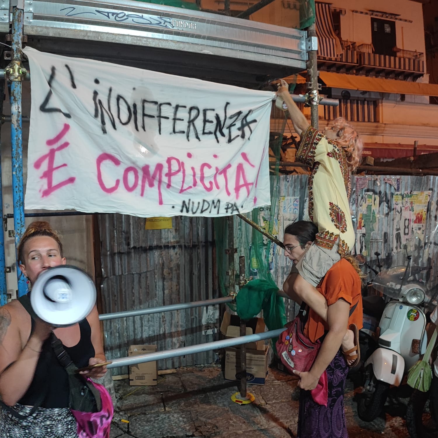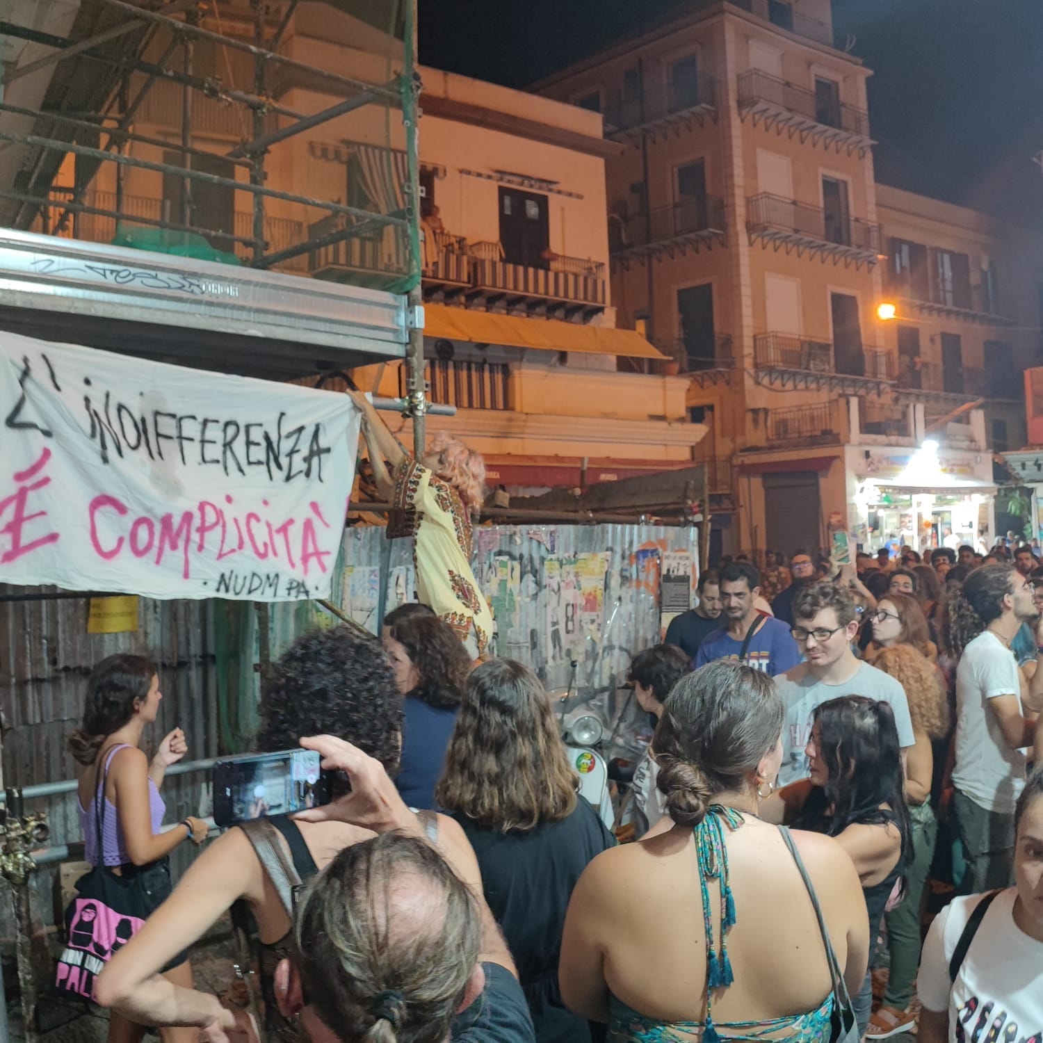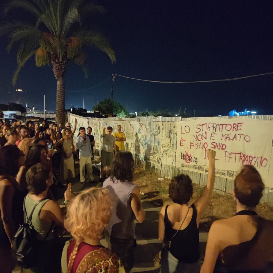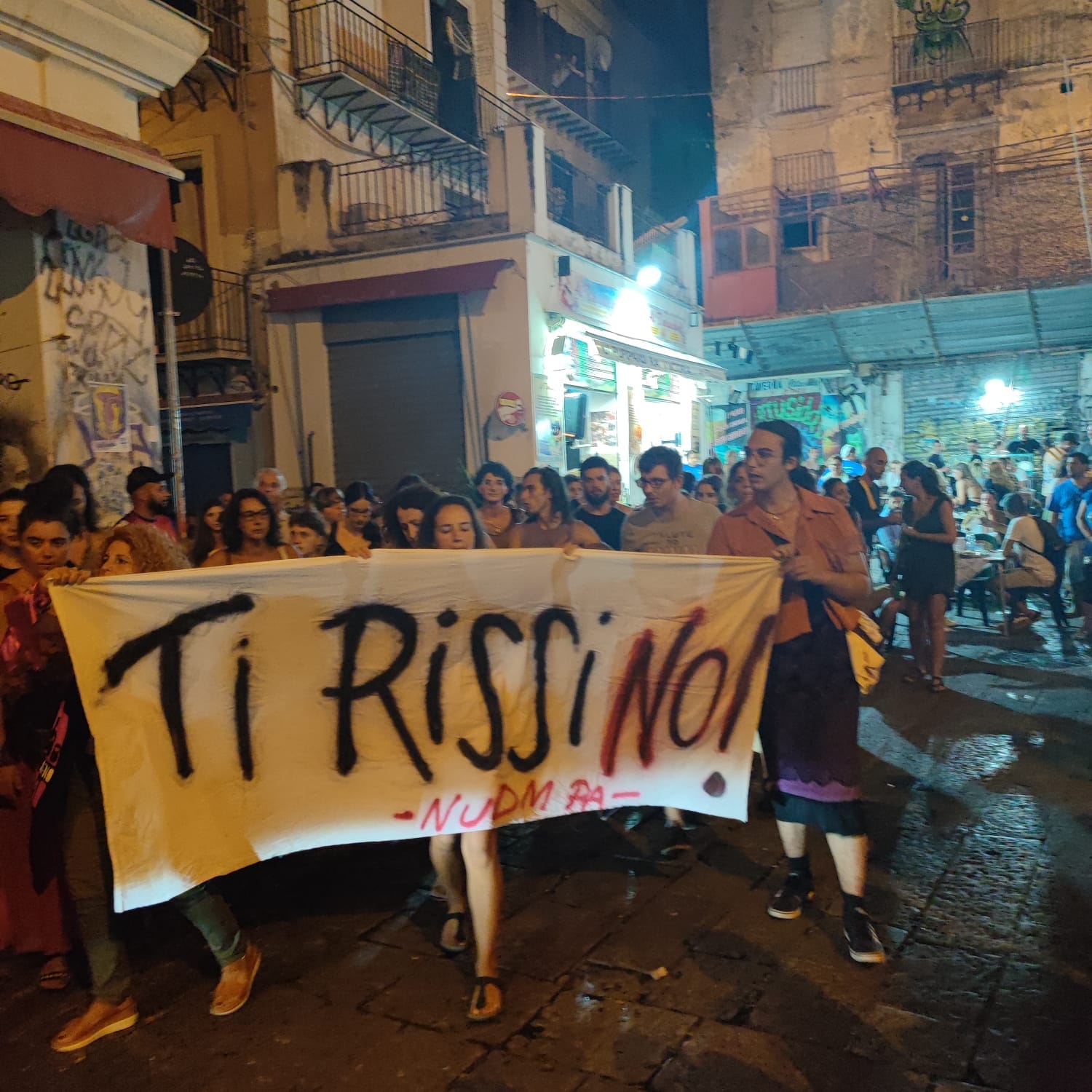 “È bastato un semplice passaparola per mettere su ieri un bellissimo e prezioso momento di rabbia collettiva e rumore in solidarietà alla giovane stuprata da sette giovani uomini al Foro Italico e contro il sistema patriarcale che normalizza la violenza di genere e continua a sfornare i suoi figli, uomini per i quali noi non siamo altro che carne da macello, prede da cacciare – dicono gli organizzatori – Un momento in cui ci siamo riconosciute come sorelle e ci siamo riappropriate delle strade e della città senza paura alcuna per dire che siamo libere di viverci come vogliamo e che respingiamo qualsiasi forma di militarizzazione dello spazio pubblico come risposta securitaria perché le strade sicure le facciamo noi che le attraversiamo.
