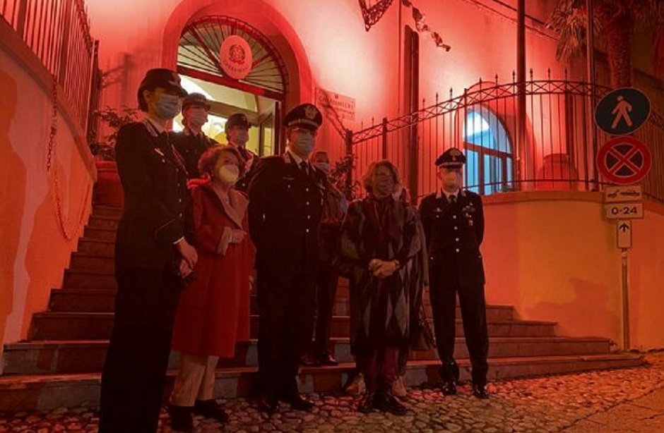 Ieri il comando provinciale dei carabinieri si è tinto di arancione nella giornata internazionale per l’eliminazione della violenza contro le donne.