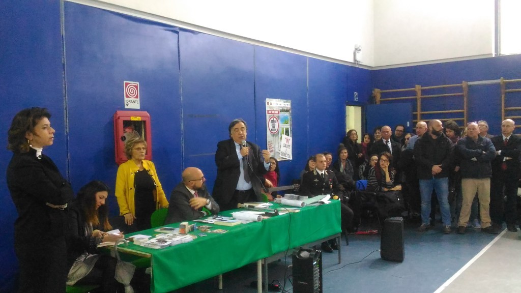 Il sindaco Leoluca Orlando si è confrontato con i ragazzi sul tema dei diritti, dell’accoglienza e della diversità, sottolineando come venti anni fa questo tipo di incontri erano impensabili, a testimonianza del cambio di cultura e di sensibilità sul tema. C’è stata poi l’esperienza diretta di chi queste problematiche le affronta per attività di servizio come il Commissario Osvaldo Busi, referente della Polizia Municipale di Palermo nella Rete cittadina antiviolenza, il giovanissimo Tenente dei Carabinieri, Pasquale Del Prete, Comandante del Nucleo Operativo della Compagnia di San Lorenzo, i rappresentanti dell’Associazione Le Onde onlus, molto attiva e presente sul territorio, l’avvocato Alice Anselmo, che si è soffermata sul tema della denuncia lanciando anche la proposta di un disegno di legge di iniziativa popolare che modifichi, allungandoli, i tempi per la presentazione delle denunce. L’incontro si era aperto con l’intervento di Maria Prestigiacomo, Presidente dell’Amap, che ha parlato dell’importanza della risorsa acqua e di un suo uso corretto, per evitare gli sprechi. Nel corso dell’appuntamento anche un momento musicale con la cantautrice palermitana Lucina Lanzara che ha cantato insieme ai ragazzi Bocca di Rosa di Fabrizio De Andrè, il poeta della canzone italiana, forte sostenitore dei diritti.