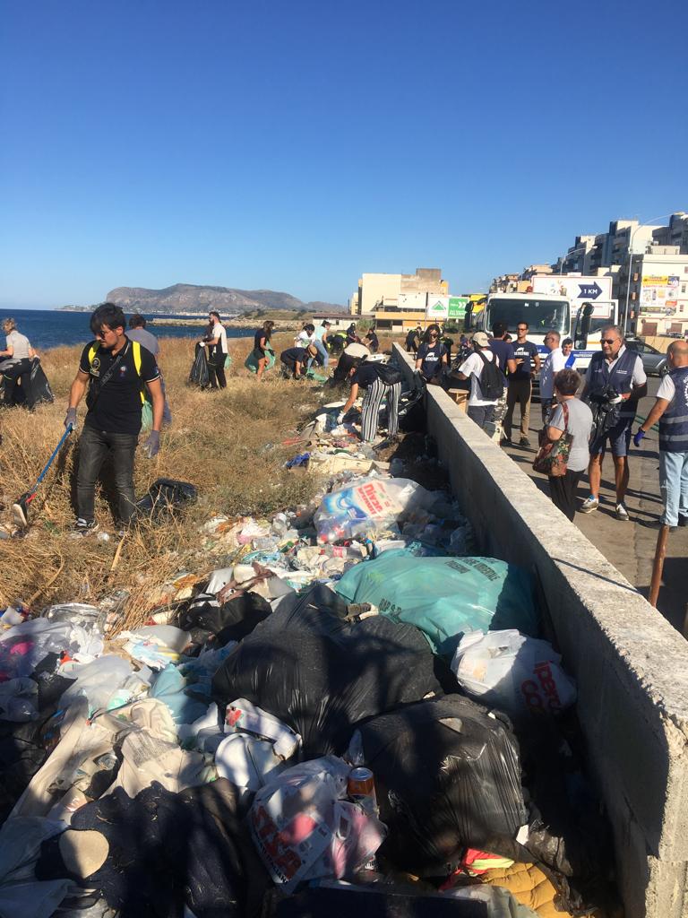 Circa 200 volontari partecipano alla pulizia della spiaggia. Tra gli organizzatori Plastic free. Alla raccolta partecipano anche alcuni ragazzi messicani ospiti del Rotary, dunque si tratta di una manifestazione dal respiro internazionale. Tra i volontari anche il presidente del Rotary Mediterranea Massimo D’Anna.