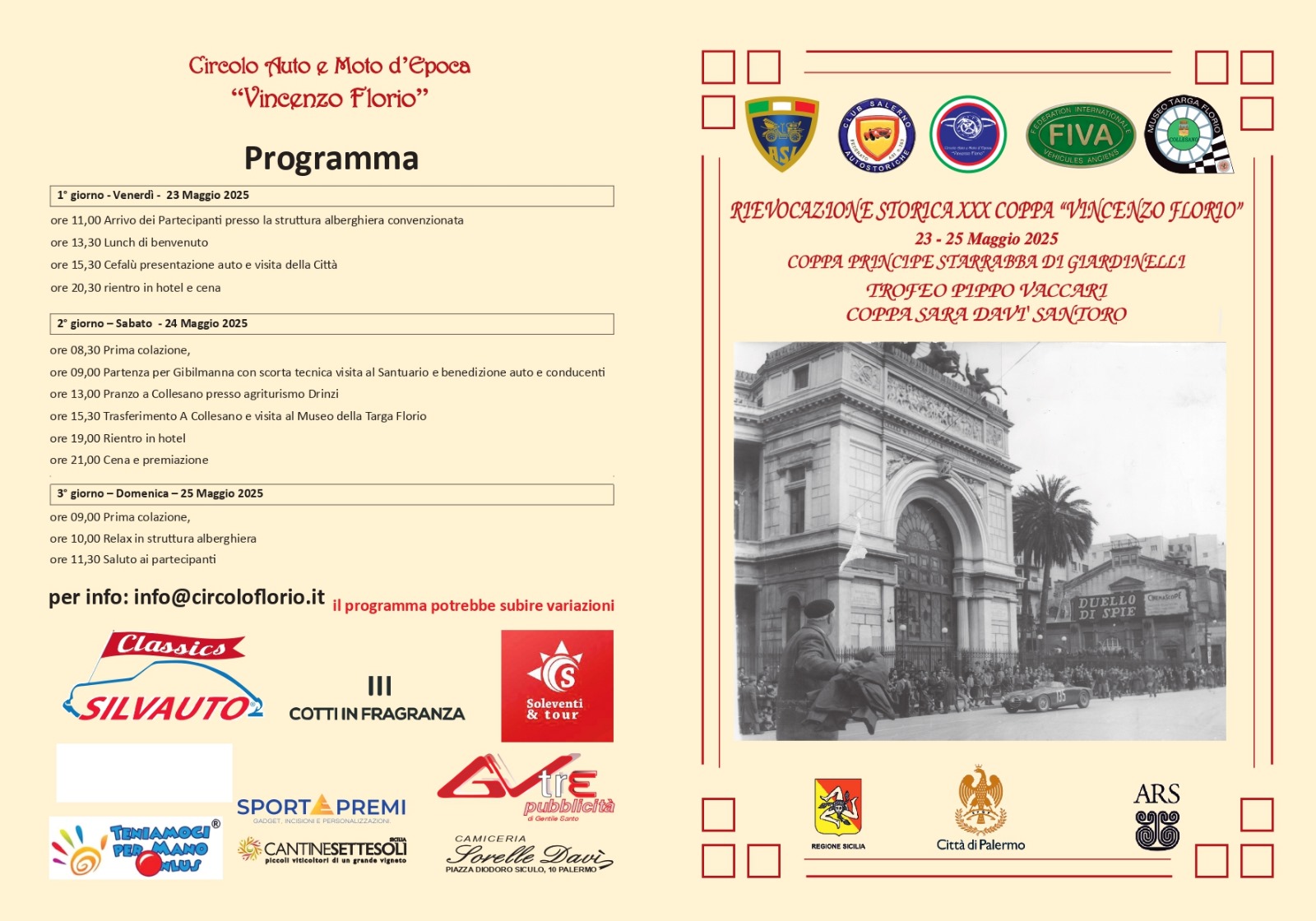 Come ogni anno, la manifestazione coniuga la valorizzazione delle auto storiche con la promozione del territorio: una formula di indiscutibile successo che, nel tempo, ha reso la rievocazione della Coppa “Vincenzo Florio” un evento attesissimo e unico, grazie all’impeccabile organizzazione e alle suggestioni vintage che lo caratterizzano.