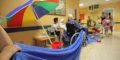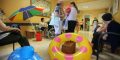 Portare il mare all’interno del reparto: i clown dottori sono riusciti in questa impresa davvero surreale, ma forse proprio per questa meravigliosamente coinvolgente e, armati di pinne, costumi da bagno, salvagente, occhiali da sole, ma c’erano anche ombrelloni, maschere, persino la sabbia e l’immancabile acqua, hanno simpaticamente invaso i locali del reparto.