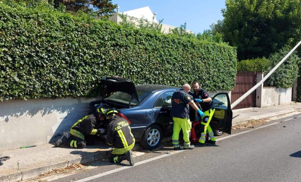Sul posto sono intervenuti i vigili del fuoco che hanno estratto il conducente, settantasettenne, e lo hanno affidato alle cure del 118 che ha trasferito l’anziano all’ospedale Giovanni Paolo II. Sul posto per le attività di competenza ed i vari rilievi, il personale della polizia locale.