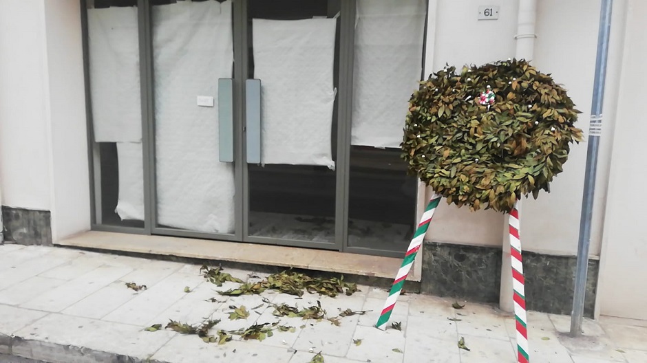 Una corona di fiori secchi è stata trovata stamane nella sede di Vittoria dell’ex comitato elettorale del candidato sindaco Salvatore Di Falco.