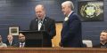 Anche su questo fronte non è mancata l’ironia. “Sono stato di recente a Washington, D.C – ha raccontato al pubblico intervenuto alla cerimonia di insediamento – e ho iniziato a sentirmi male. Il dottore mi ha detto: hai la Trump-itis!”. Risate e applausi.