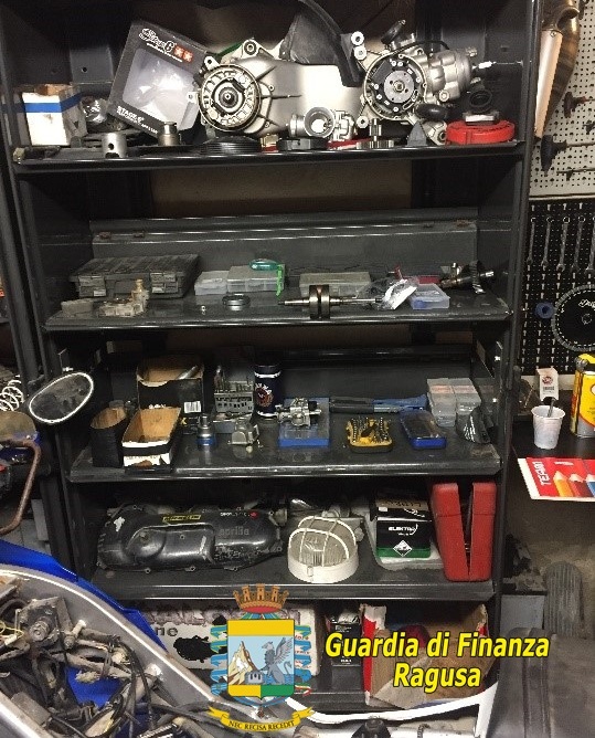 All’interno dei locali sono stati altresì rinvenuti diversi motocicli smontati e in fase di riparazione, oltre a parti meccaniche sia nuove che usate, nonché la presenza di due clienti in attesa delle riparazioni ai rispettivi mezzi.