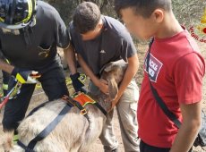 È stato prontamente disposto l'invio della squadra operativa del locale distaccamento che, adoperandosi con tecniche speleo alpinistiche è riuscito ad imbracare l'animale e riportarlo in superfice sano e salva consegnandolo al legittimo proprietario