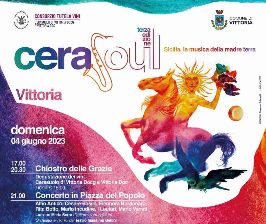 In occasione delle celebrazioni per il mezzo secolo dell’ottenimento della Doc per il Cerasuolo di Vittoria Docg, il prossimo 4 giugno si torna a brindare con la musica, questa volta a Vittoria e con la collaborazione dell’Ente Comunale con cui si organizzerà una edizione speciale di CeraSoul.