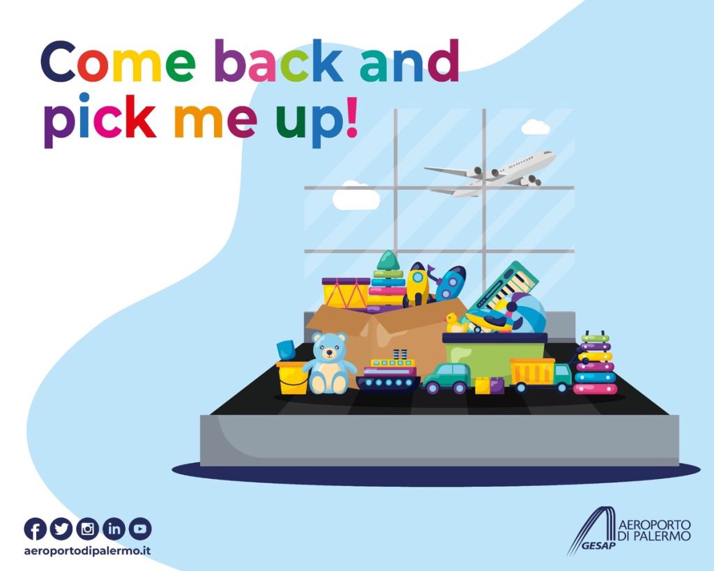 PALERMO (ITALPRESS) – “Come back and pick me up” (torna indietro e prendimi) è il titolo della campagna promossa da Gesap, la società di gestione dell’aeroporto internazionale “Falcone Borsellino” di Palermo, che per la seconda volta ha deciso di condividere sui propri canali social un video (https://www.youtube.com/watch?v=fO3GRV_8P1s) dove vengono mostrati peluches, bambole e zaini rinvenuti in aeroporto negli scorsi mesi e non reclamati.