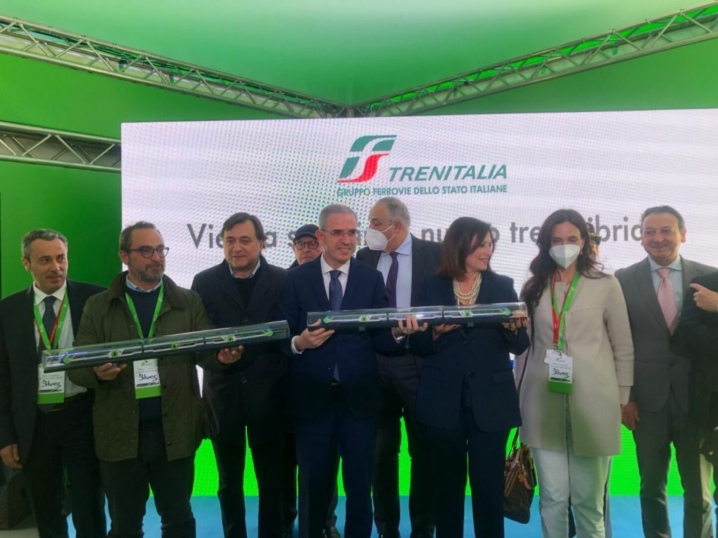 PALERMO (ITALPRESS) – Presentato a Palermo il Blues, primo treno ibrido di Trenitalia (Gruppo FS Italiane) a doppia alimentazione, elettrica e diesel.