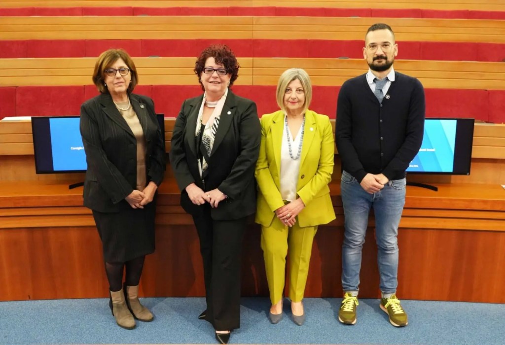 – foto ufficio stampa Consiglio Ordine Assistenti Sociali della Sicilia, da sinistra Maria Spoto insieme alla Presidente Barbara Rosina, alla vicepresidente Mirella Silvani ed al segretario Marco Diliberti –