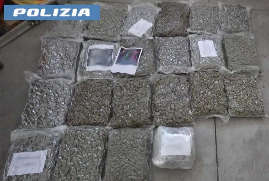 La perquisizione del box ha consentito di scoprire un vero e proprio deposito per lo stoccaggio e il confezionamento delle dosi di droga. Nello specifico sono state rinvenute 22 buste, contenenti quasi 24 chilogrammi della sostanza stupefacente, nonché materiale per il confezionamento.