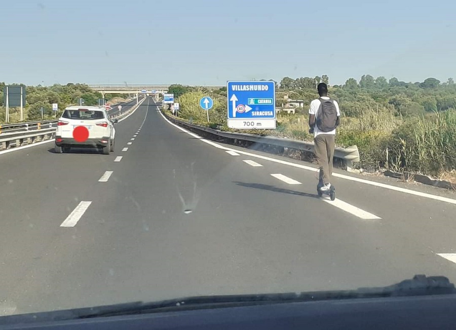 A spasso con il monopattino su una strada statale, quella che lega Villasmundo con Augusta, a ridosso dell’ingresso dell’autostrada Siracusa-Catania. E’ quanto è avvenuto stamane ed a segnalare l’episodio è stato un automobilista che quasi non credeva ai suoi occhi nel vedere quel giovane circolare, come se fosse in città. Sono state avvertite le forze dell’ordine per il grave pericolo.