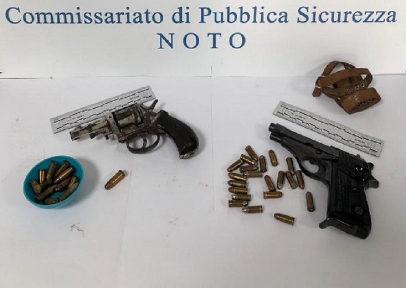 A Noto, gli agenti del commissariato di polizia hanno denunciato un anziano di 71 anni che aveva nella sua disponibilità una pistola semiautomatica calibro 7,65 , una rivoltella calibro 38 e 33 cartucce. Gli accertamenti hanno consentito di verificare che la Beretta “apparteneva al padre defunto e successivamente era stata detenuta abusivamente dal figlio”. Le armi sono state poste sotto sequestro.