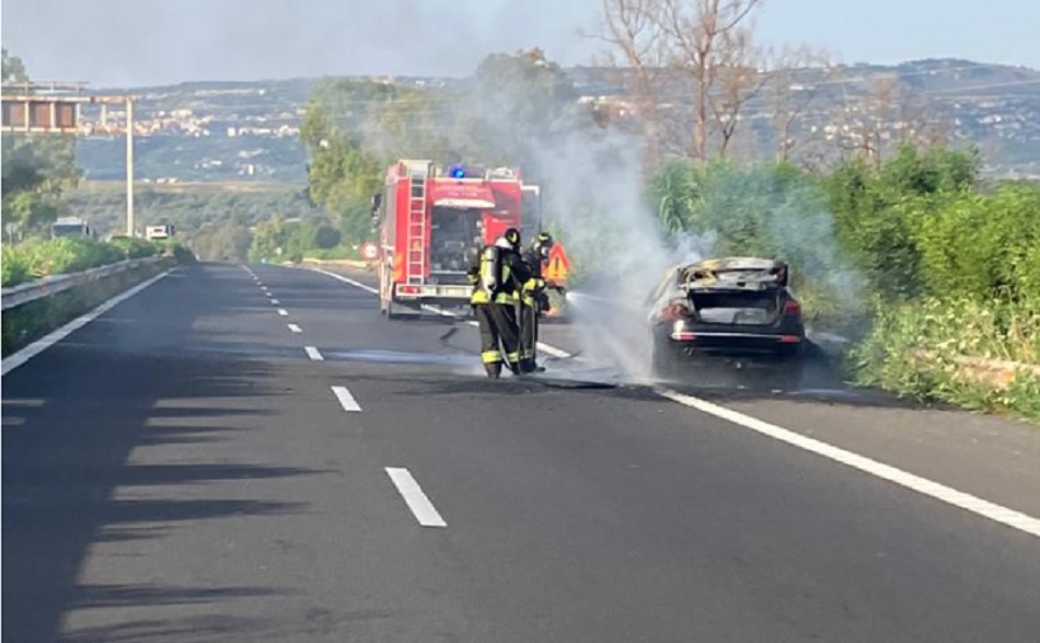 Forse un corto circuito o un’avaria al motore, per via del gran caldo, fatto sta che è andata in fiamme una macchina mentre percorreva l’autostrada Siracusa-Catania, all’altezza dello svincolo di Augusta.