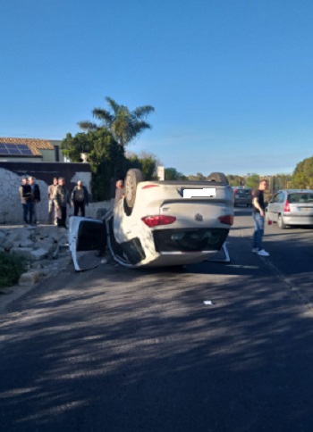 Un’auto, una Golf di colore bianco, si è ribaltata in via Elorina, in prossimità dello svincolo del tempio di Giove, noto come Due colonne, alla periferia sud di Siracusa. Secondo una prima ricostruzione, al vaglio della Polizia municipale, si tratterebbe di un incidente autonomo ma è ancora del tutto chiaro la dinamica.