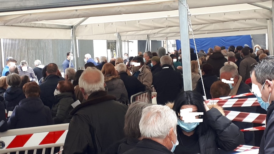 “Centinaia di ultra80enni in coda, in attesa di fare il vaccino anti Covid, assembrati e anche al freddo e sotto la pioggia: questo è lo scenario a cui si assiste in questi giorni, davanti all’Urban Center quale centro