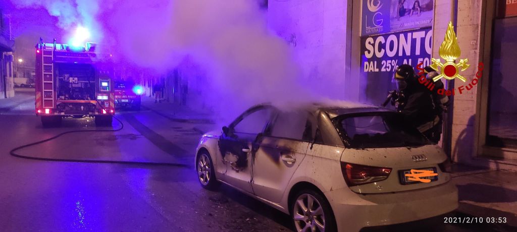 Un incendio, scoppiato questa notte a Siracusa, ha divorato una macchina parcheggiata in via Arsenale. Si tratta di una Audi e sono state alcune telefonate di emergenza al centralino del comando provinciale dei vigili del fuoco a fare scattare l’allarme.