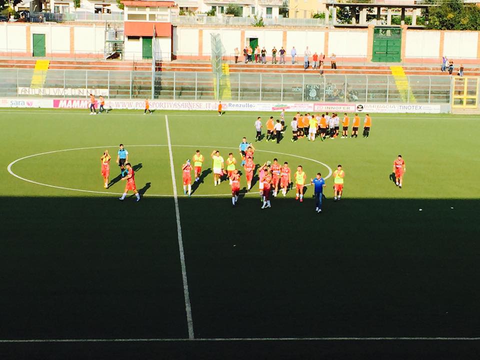 L’imbattibilità è terminata, ma poco importa. Con il 2 a 1 conquistato a Sarno ( di Ricciardo e Foderaro i gol ), i bianconeri di Seby Catania raggiungono l’Igea in testa alla classifica, in virtù del pareggio ( 1 a 1) dei giallorossi contro l’Aversa.