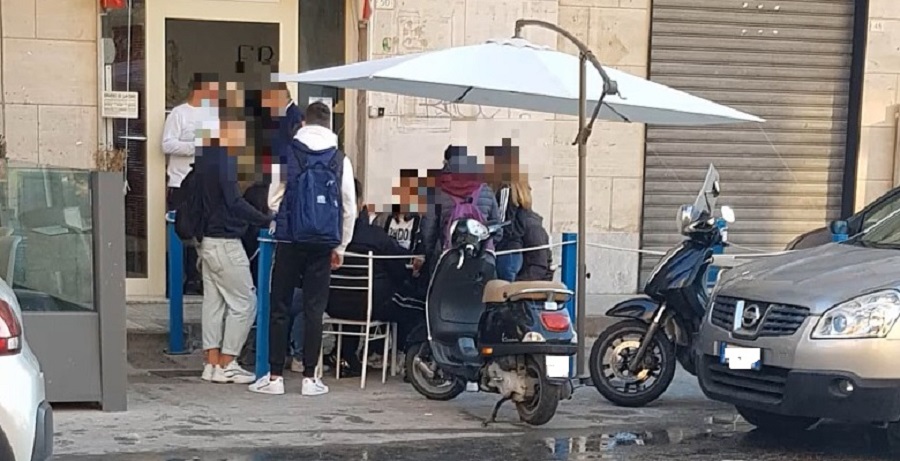 Tutti insieme appassionatamente, stretti, assembrati alla faccia del Covid19 e delle misure per prevenire il contagio. E’ quanto accaduto a Siracusa, nella zona di viale Zecchino, dove ci sono diversi istituti superiori ma prima del suono della campanella alcuni studenti, per ingannare il tempo, hanno pensato tutti insieme di accomodarsi attorno ad un tavolino. Sotto lo sguardo dei passanti, degli automobilisti e degli stessi commercianti, quei ragazzi non hanno rispettato il distanziamento, alcuni di loro addirittura non indossavano la mascherina. Altro che lotta alla movida , ritenuta come uno dei principali vettori del virus, in questa zona di Siracusa si comincia di buon mattino a violare le regole, con cadenza giornaliera ma è altrettanto vero che i controlli non ci sono.