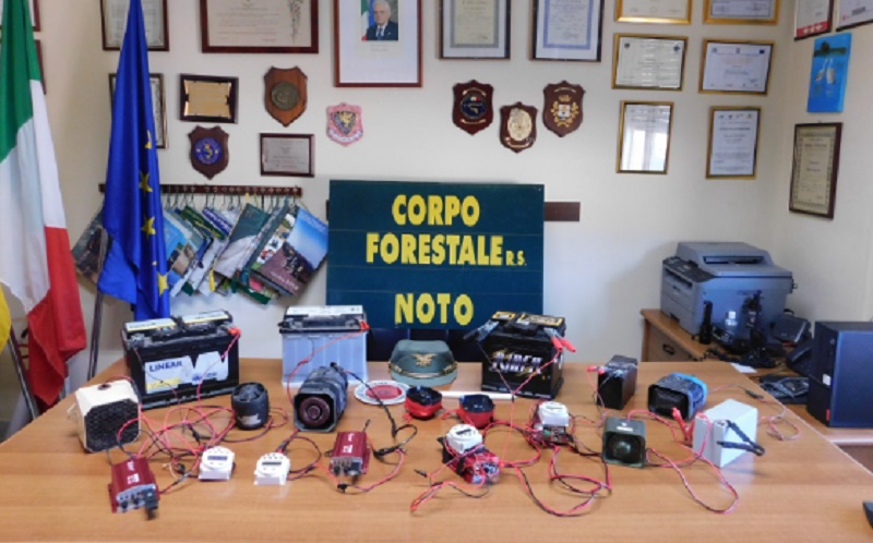 Gli uomini del Corpo Forestale hanno individuato ben cinque richiami acustici illegali sul territorio e precisamente nelle località Madonna della Scala, Bimmisca, Bombiscuro, Agliastro e Passo Corrado nel comune di Noto.