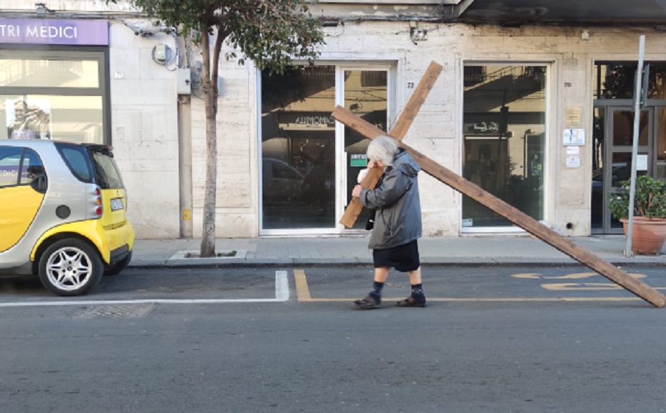Curiosità a Siracusa per la inconsueta passeggiata di una persona che percorso corso Gelone portando una croce. E’ accaduto stamane e la foto ha fatto il giro dei social, scatenando diversi commenti. La persona protagonista di questo episodio insolito ha camminato lungo la strada, creando non pochi pericoli per la sua incolumità, le forze dell’ordine sono state informate dalla sua presenza.