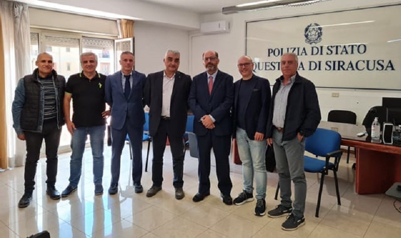Giorgianni, segretario regionale del Siulp, un sindacato di polizia, nel corso di un incontro con la segreteria provinciale, rappresentata da Tommaso Bellavia.