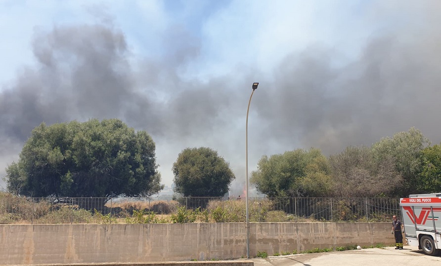 Un incendio è scoppiato nella tarda mattina in una zona di campagna tra viale Scala Greca e viale Santa Panagia, a nord di Siracusa. Le fiamme hanno marciato pericolosamente verso alcuni edifici, tra cui il palazzo delle Poste e l’istituto per geometri ma il rogo ha anche minacciato il Tribunale.