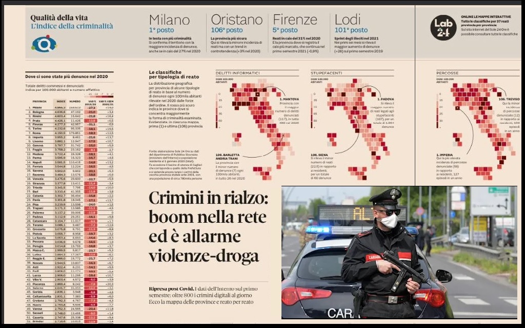 - L’indice di criminalità nella classifica del Sole 24 Ore. Milano in testa.