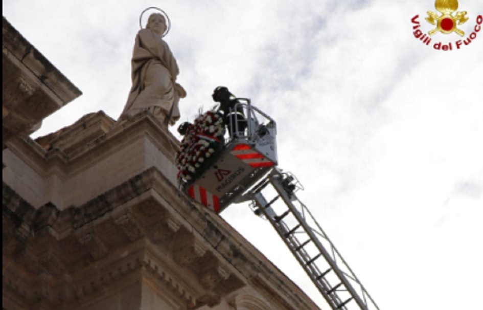 I vigili del fuoco di Siracusa, questa mattina, in occasione della traslazione del simulacro di Santa Lucia, hanno reso omaggio alla Patrona con la deposizione di una corona di fiori ai piedi della statua raffigurante la santa sulla facciata del Duomo. “Grande è la devozione dei vigili del fuoco di Siracusa a Santa Lucia a cui sono legati da particolari sentimenti di gratitudine dal terremoto del 1990” spiegano dal comando provinciale dei vigili del fuoco di Siracusa.