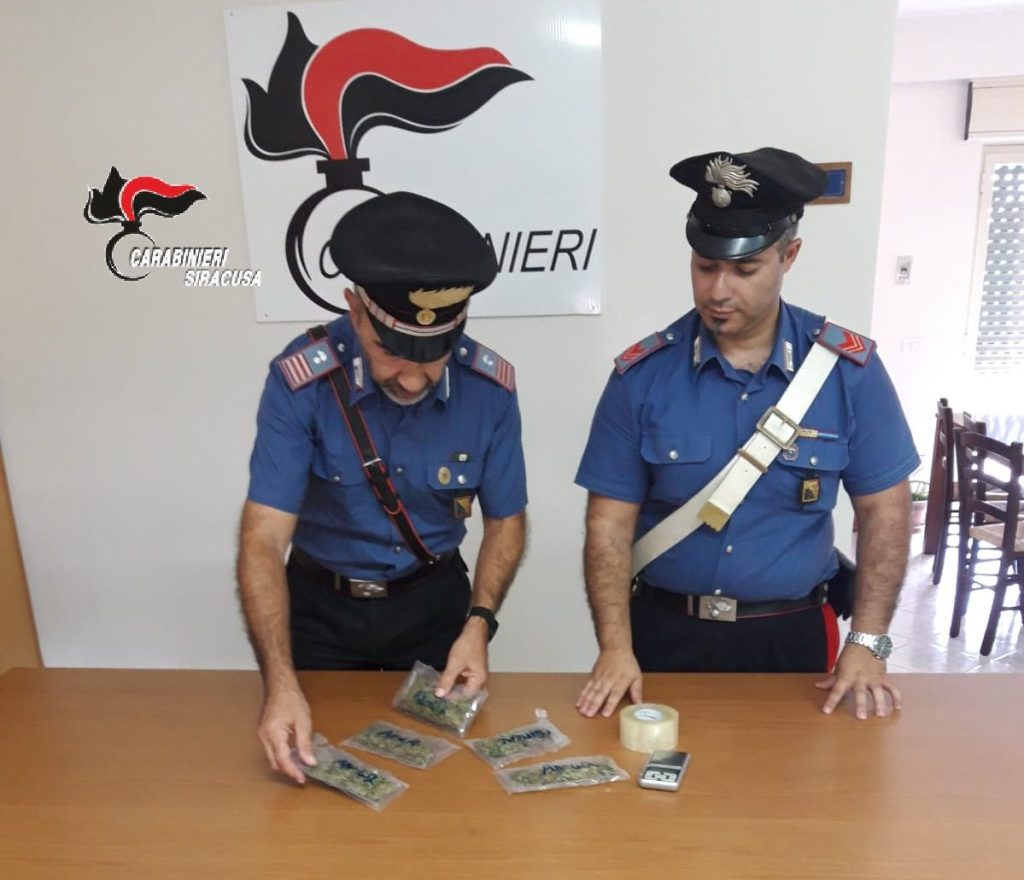 I Carabinieri di Pachino (SR) hanno arrestato detenzione ai fini di spaccio di sostanza stupefacente un ragazzo di 20 anni.  I militari, nel corso della serata di ieri, hanno eseguito un blitz all’interno della casa del giovane e hanno trovato 85 grammi di marijuana suddivisa in 5 buste e materiale per il confezionamento delle dosi.