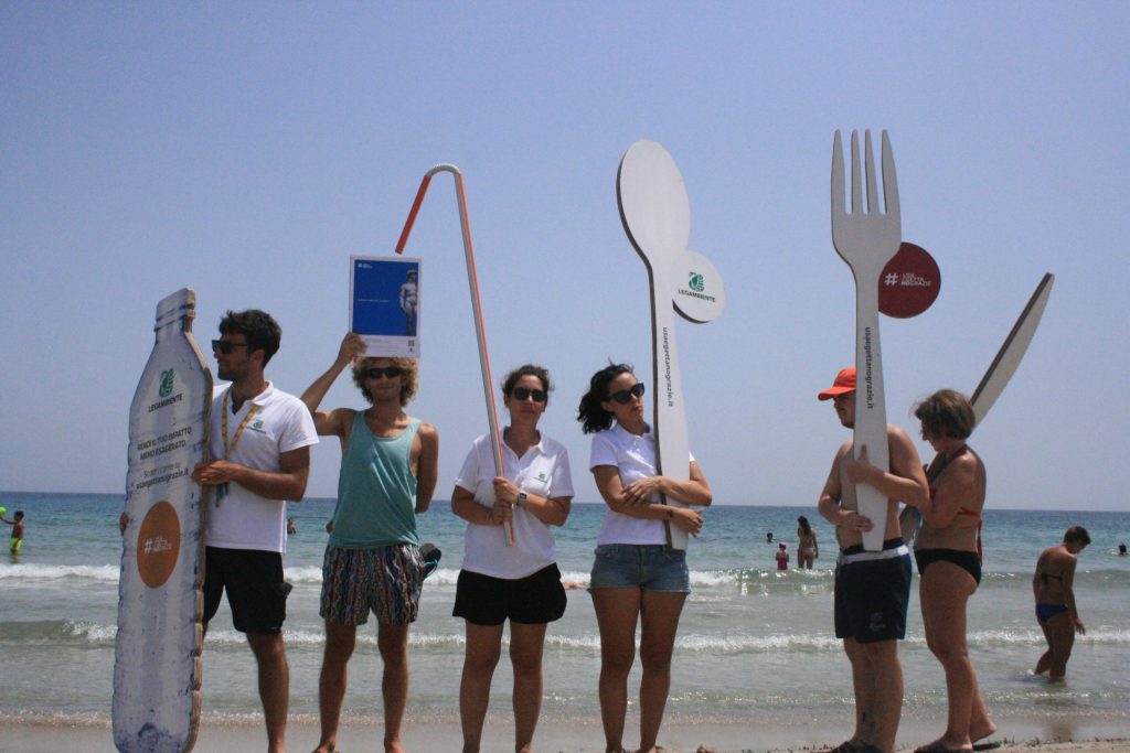 Un enorme piatto, posate, una bottiglia e una mega cannuccia. Tra lo stupore dei bagnanti sono comparsi usa e getta giganti: a portarli in spiaggia i volontari di Legambiente che, questa mattina, hanno organizzato un “flash mob” sulla spiaggia Spinazza nel Golfo di Noto in occasione della tappa a Marzamemi della Goletta Verde.