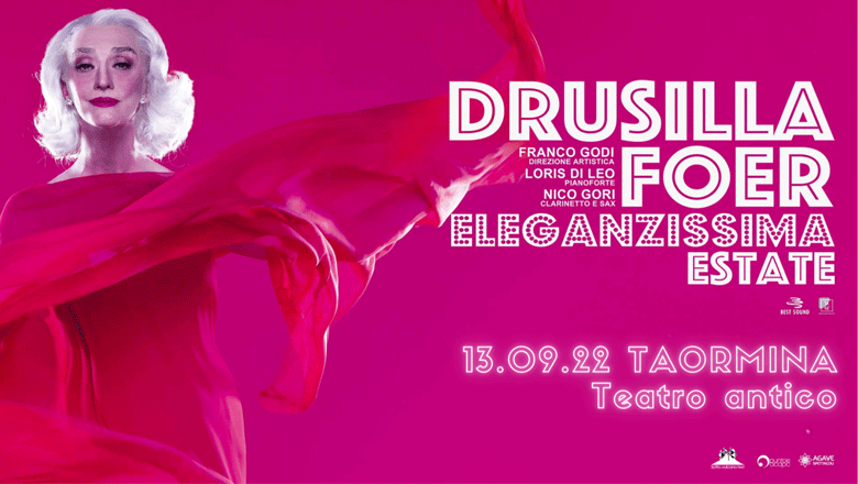 Eleganzissima Estate, lo spettacolo di Drusilla Foer arriverà sul prestigioso palco del Teatro antico di Taormina, il 13 settembre 2022 (ore 21.30).