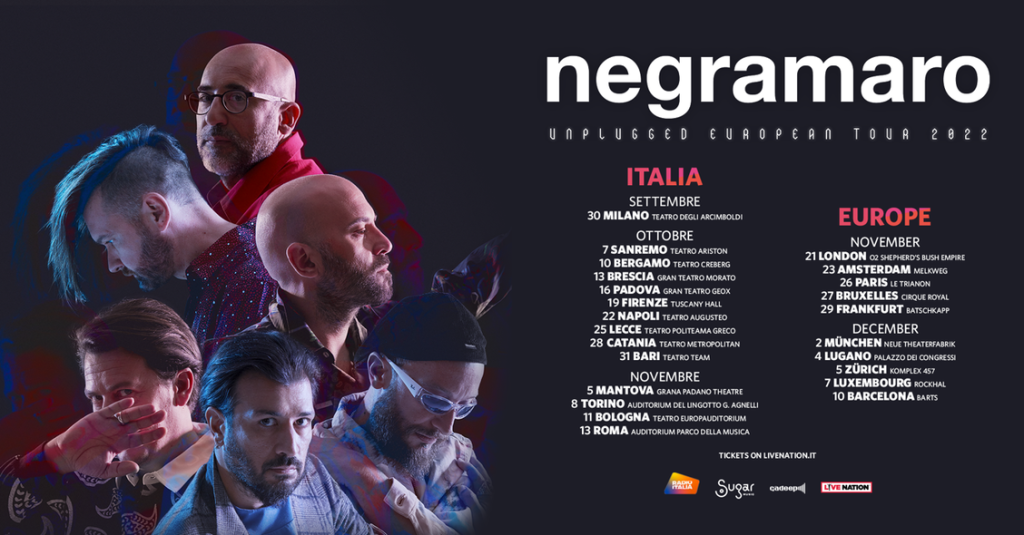 I Negramaro con il loro Unplugged European Tour 2022 tornano così nei teatri dopo oltre 15 anni di assenza, durante i quali hanno conquistato le più grandi venue del paese, dai palazzetti, ai grandi festival, agli stadi.