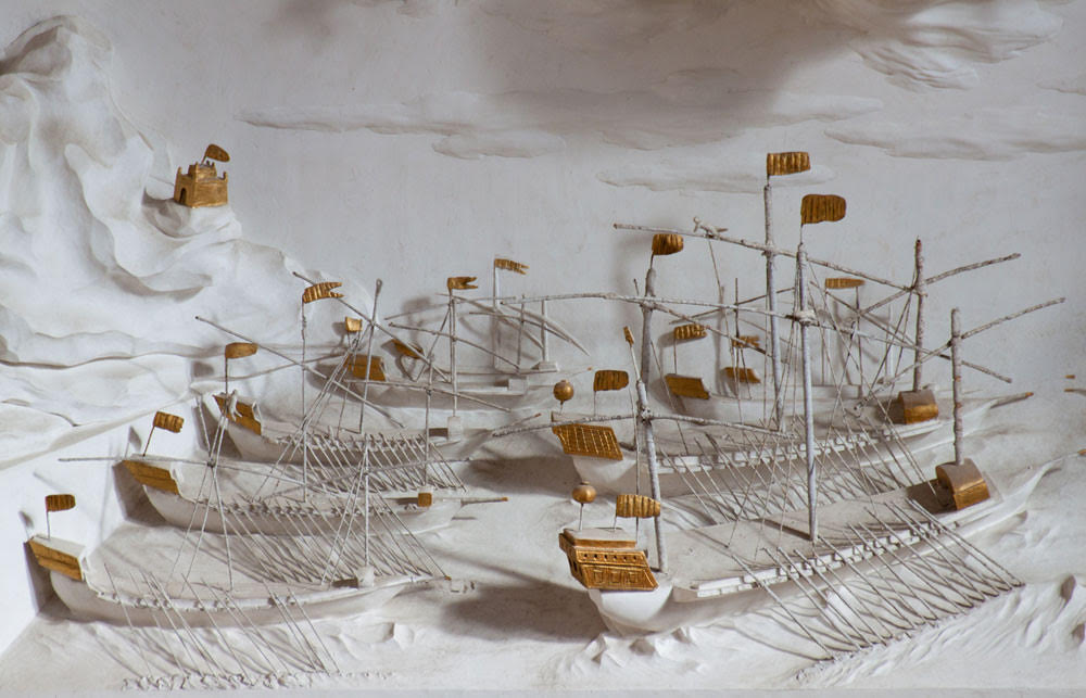Non è un caso che sia stato scelto l’Oratorio di Santa Cita per questa opera che racconta la Battaglia di Lepanto.  Nelle tragiche ed inutili guerre di religione che l’umanità ha perpetrato nel corso della storia, la battaglia di Lepanto è forse considerata la più simbolica nell’eterna lotta tra Cristianesimo ed Islamismo. Rappresentata nel corso dei secoli da grandi artisti, a Palermo viene ricordata alle carceri dell’Inquisizione nei graffiti di un prigioniero ma soprattutto in uno dei capolavori di Giacomo Serpotta, il grande lenzuolo di stucco che la contiene nella contro facciata dell’oratorio di Santa Cita.