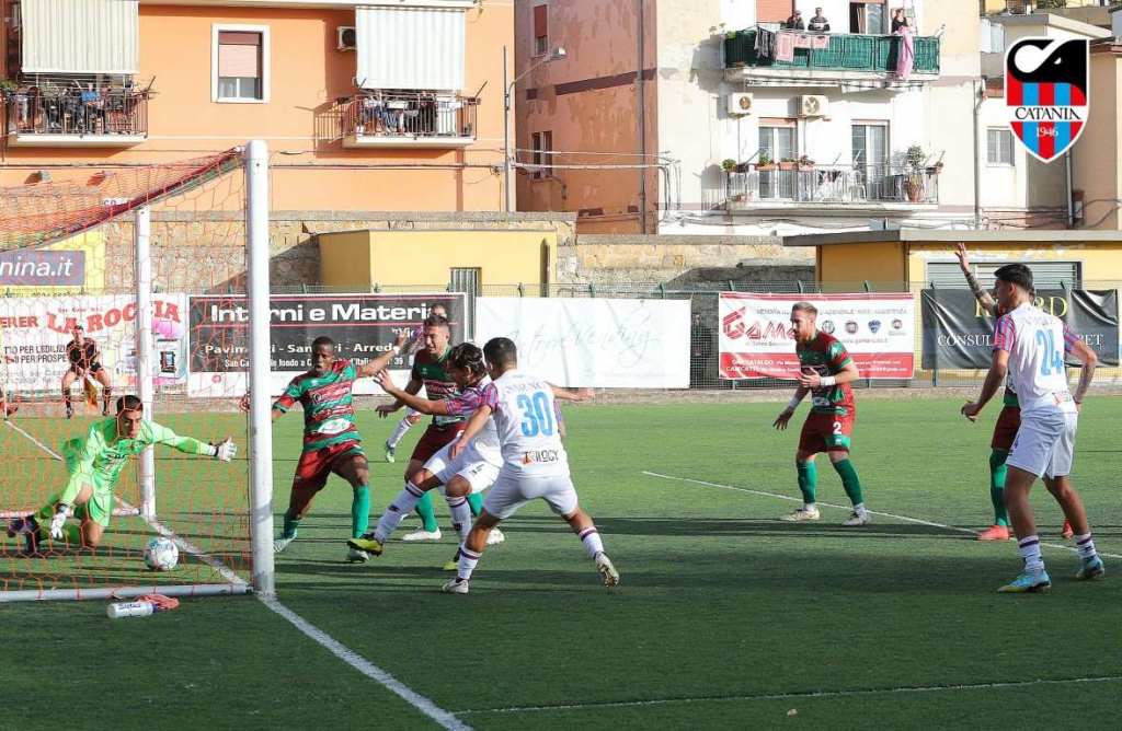 Pochissimi sussulti al Valentino Mazzola. La Sancataldese con molta grinta e determinazione ha provato a fare la partita ed ha messo paura ai rossazzurri. All’8’ minuti Zerbo sfrutta un’azione personale di Xepapadakis che sfonda quasi centralmente, appoggia al centro dove non c’è nessun difensore etneo dove è pronto ad esplodere il tiro potentissimo che non lascia scampo a Bethers.