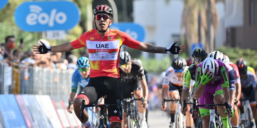 La maglia giallorossa di leader della classifica generale ha confermato il suo stato di grazia ed anche oggi ha regolato tutti gli avversari sfruttando anche il perfetto gioco di squadra fatto dal suo team che ha concretizzato un capolavoro tattico. La UAE-Team Emirates lo ha prima protetto e poi lanciato verso il traguardo di Mondello, la borgata marinara di Palermo.