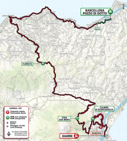 La Barcellona Pozzo di Gotto-Giarre di 216 km decide tutto. La frazione più lunga è anche la più insidiosa con la presenza di tre gran premi della montagna. Partenza da piazza Duomo alle 9.30 e arrivo al termine del tappone di montagna a Giarre in via Callipoli.