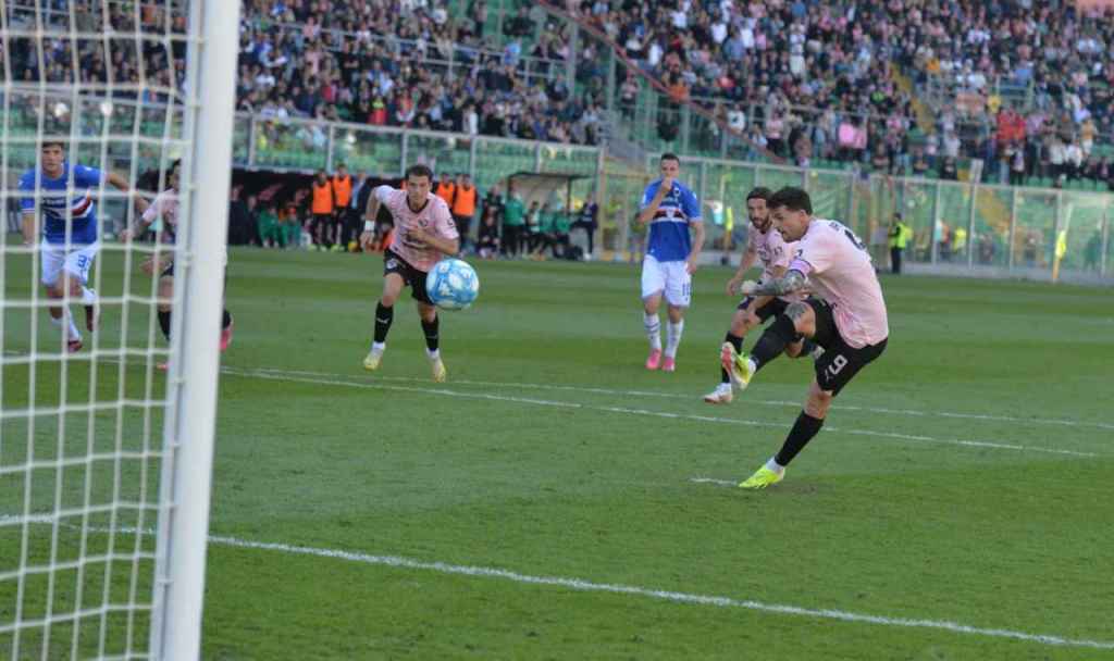 La Sampdoria pareggia al 61′ con un super gol di Darboea. Il centrocampista gambiano si inventa un tiro dai 30 metri che sorprende tutti, Pigliacelli incluso. Se è vero che il giocatore doriano trova il jolly, con la sfera che si insacca sotto l’incrocio dei pali, è altrettanto vero che è stato lasciato tirare troppo liberamente e che l’estremo difensore rosanero si è mosso in ritardo.