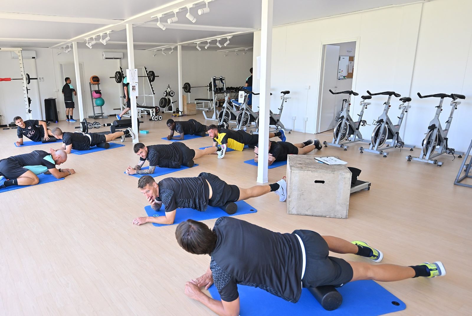 La squadra, reduce dalla buona prestazione in Coppa Italia a Cagliari, ha effettuato il primo allenamento nella nuova struttura che è ancora in una fase provvisoria: i due campi in erba, la club house per i pasti con la nuova cucina e una struttura temporanea completamente attrezzata con palestra e spogliatoi.