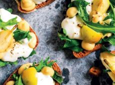 La bruschetta secondo Carlo Cracco, la fetta croccante sospesa tra pere e squacquerone