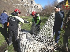 Intervento dei Vigili del Fuoco nella gola dell'Infernaccio (AP). Due bovini, infatti, erano rimasti bloccati da una frana. Per soccorrerli si è dovuto ricorrere ad un elicottero