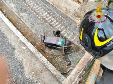 Paura in centro a Ragusa, auto vola per sei metri dal cavalcavia e finisce sulla ferrovia
