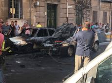 Auto in fiamme nel piazzale della Gi. Bi. Auto a Partanna Mondello a Palermo. I vigili del fuoco sono intervenuti nella concessionaria per spegnere le fiamme che avevano già avvolto due auto.