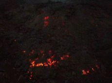 Lo spettacolo della colata lavica dall’Etna, fronte fermo in raffreddamento, restano i divieti