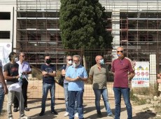 Manifestazione davanti al cantiere per la costruzione della nuova caserma dei vigili del fuoco di Siracusa, nel rione della Pizzuta, a nord della città. Una protesta per chiedere lo sblocco dei lavori ancora fermi nonostante la fine del lockdown.