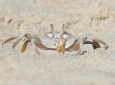 Il granchio dovrebbe essere un Ocypode cursor ed era gia' stato fotografato nella riserva Naturale di Torre Salsa(Siculiana). Il crostaceo e' ormai frequente in alcune spiagge greche ed egiziane.