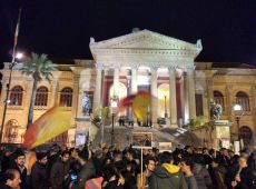 Centinaia di palermitani tra studenti, precari, disoccupati si sono ritrovati in piazza Verdi a partire dalle 18 per brindare alla vittoria del NO al referendum costituzionale e dunque alla 'cacciata' del presidente del Consiglio Matteo Renzi.